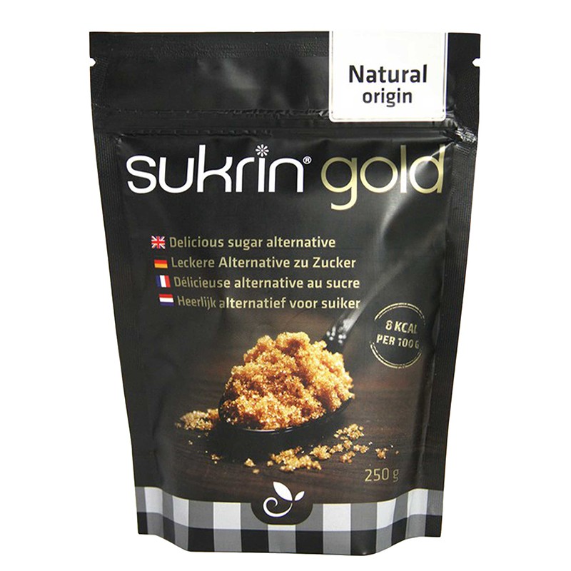 Уникалната комбинация от естествени подсладители еритрол Surkin, стевиол гликозиди, както и малцовият екстракт от ечемик (без глутен) придават на Sukrin Gold наситен и богат характер. Препоръчителният за трапезата подсладител Sukrin Gold се класифицира като безкалоричен, тъй като е с по-малко от 0,4 kcal на порция от приблизително 1 чаена лъжичка захар. Това количество има минимален ефект върху нивата на кръвната захар. Sukrin Gold е перфектен за печене на десерти, за подслаждане на топли напитки и за овкусяване на кисело мляко, извара и овесени ядки