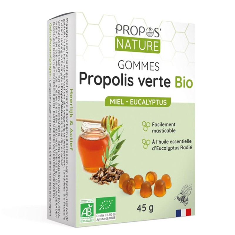 Органик желирани таблетки С прополис, портокал или евкалипт е хранителна добавка от френската марка Propos Nature. Не съдържа ГМО, лактоза, глутен и алкохол.
