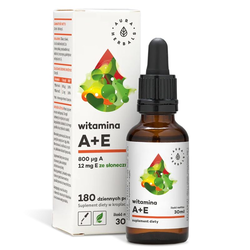 Витамин А + Е на Aura Herbals е течен продукт под формата на капки, който поддържа нормалната работа на имунната система и зрението