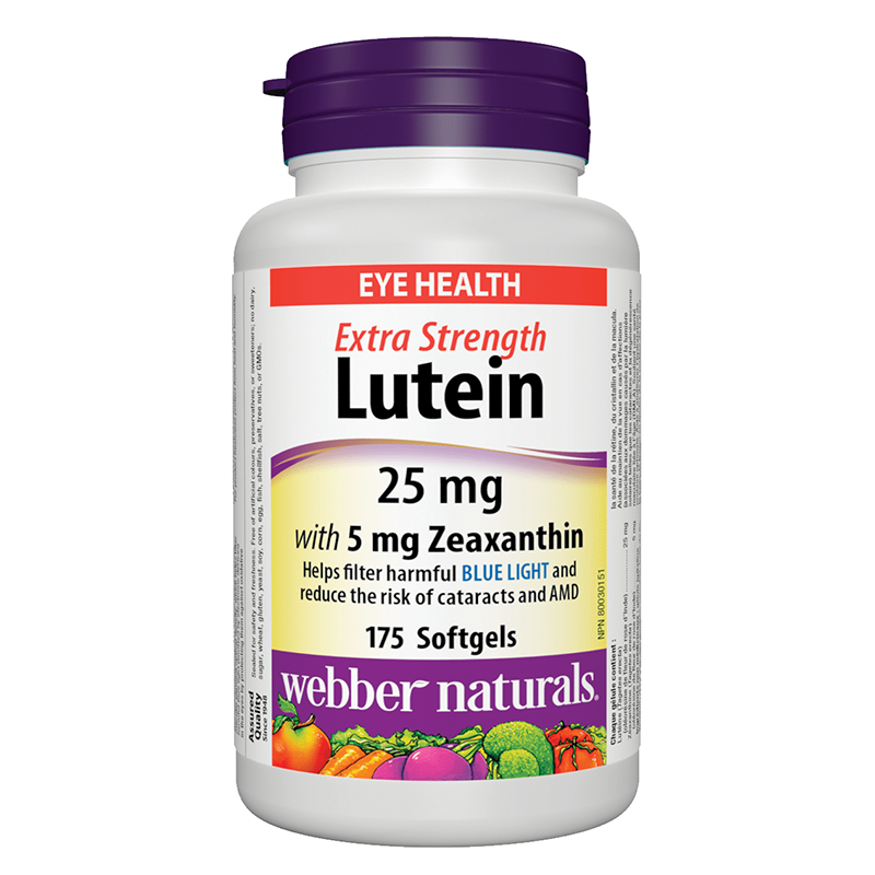 Лутеин със зеаксантин от Webber Naturals помага за подобряване на оптичната плътност на пигмента на макулата, което помага за филтрирането на вредната синя светлина (излъчвана от електронни устройства) в очите, като ги предпазва от окислително увреждане и насърчава здравето на ретината, лещата и макулата.